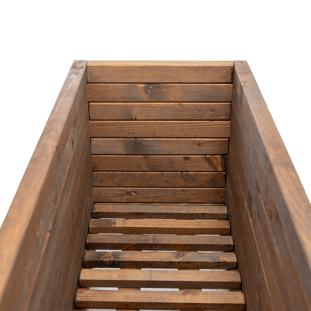 Specjalnie zaprojektowane dno w formie drabinki zapewnia odpowiednią cyrkulację powietrza i skutecznie odprowadza nadmiar wody, chroniąc rośliny przed przelaniem. W komplecie znajduje się agrowłóknina o gramaturze 100 g, która zabezpiecza drewno przed kontaktem z ziemią, jednocześnie pomagając utrzymać optymalną wilgotność podłoża. Dzięki temu Twoje rośliny mają idealne warunki do wzrostu.
