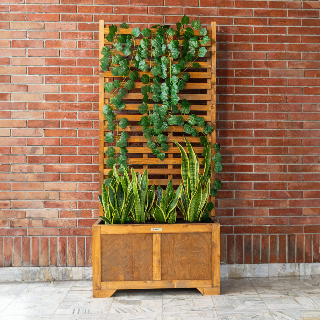 Der Topf wird Ihre Erwartungen an den Platz für Ihre Pflanzen und Sträucher sicher erfüllen. Er hat eine Leiter am Boden, um überschüssiges Wasser nach außen ablaufen zu lassen, und das Agro-Vlies, das dem Bausatz beigefügt ist, schützt das Innere des Topfes vor direktem Kontakt mit nasser Erde. Bitte beachten Sie, dass die Pergola mit dem Topf aus einem natürlichen Rohstoff wie Holz gefertigt ist, so dass sie einige Unvollkommenheiten aufweisen kann. Der aktuelle Naturtrend schätzt jedoch solche Elemente, die die Naturverbundenheit des Produkts unterstreichen.