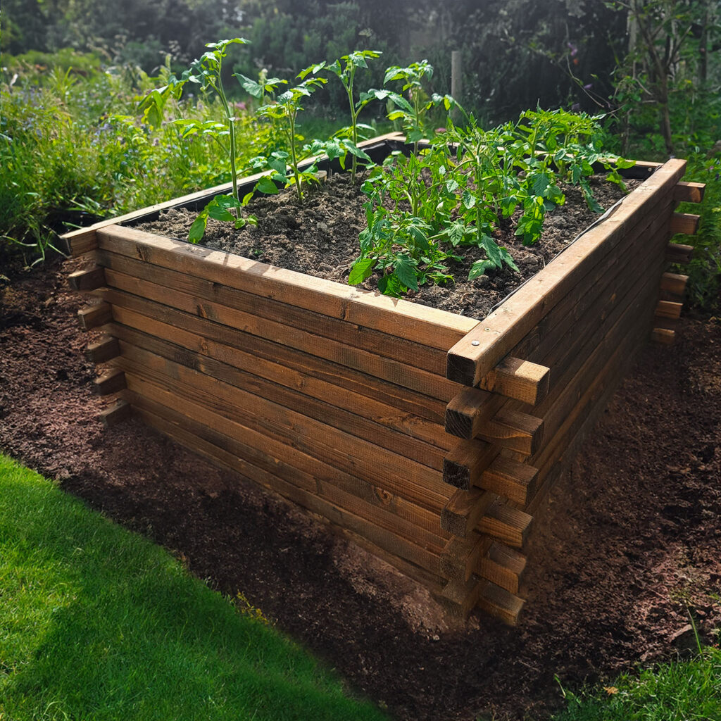 Stworzona z myślą o wytrzymałości, drewniana podwyższona grządka łączy naturalny urok drewna z solidnym wykonaniem. Grube kantówki świerkowe o przekroju 40×30 mm zostały starannie dobrane i precyzyjnie połączone, co gwarantuje stabilność oraz trwałość konstrukcji. Każdy element został dokładnie zaokrąglony i wyszlifowany, aby zwiększyć komfort i bezpieczeństwo przy użytkowaniu rabaty drewnianej. Dzięki malowaniu zanurzeniowemu w wysokiej jakości impregnacie żywicznym drewno jest skutecznie chronione przed działaniem warunków atmosferycznych, co zapewnia długotrwałą satysfakcję z użytkowania. To idealna podwyższona rabatka dla osób ceniących ekologię i naturalne materiały w swoim ogrodzie.